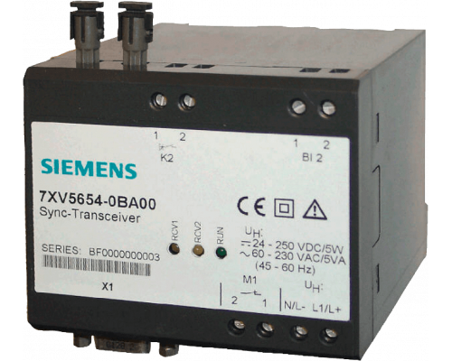 Преобразователь предназначен для устройств SIPROTEC и обеспечивает синхронизацию времени. Реализуется 1-секундный импульс для устройств SIPROTEC 4 и 1-минутный импульс для устройств SIPROTEC 3. Подключение осуществляется оптически к многомодовому волокну 62,5/125 мкм через разъем ST. Также предусмотрено электрическое подключение к устройствам SIPROTEC и возможность подключения к GPS-блоку синхронизации времени 7XV5664-0AA00.
