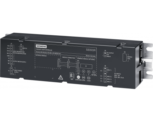 Модуль предназначен для управления дверями станков. Максимально поддерживаемый вес двери составляет 600 кг. Питание осуществляется от 36vdc. Наличие интерфейса RS485 позволяет интеграцию в системы управления. Предусмотрено 4 дискретных входа (DI) и 2 реле для управления и сигнализации. Дополнительно имеется выход 24vdc. Рабочий диапазон температур от -20°C до +50°C. Соответствует стандарту EN13849 и имеет уровень производительности PL d.