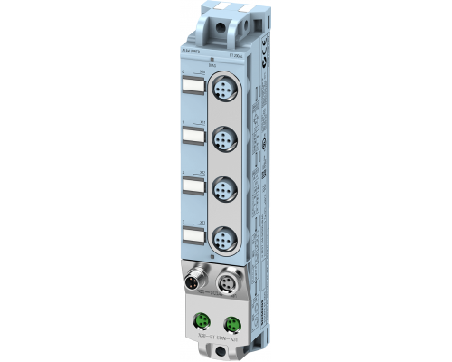 Модуль предназначен для Simatic ET 200AL. Поддерживает типы входных сигналов: ток, напряжение и термопары. Обеспечивается подключение через 4 разъема M12. Степень защиты корпуса соответствует IP67.
