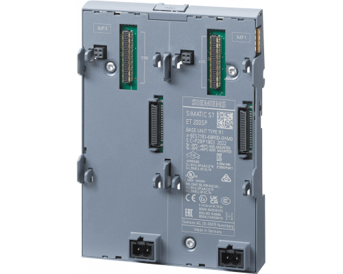 Базовая unit Simatic ET t 200SP включает в себя две слот для установки интерфейсных модулей, совместимых с R1. В комплекте поставляется интерфейсный модуль IM 155-6 PN R1 и серверный модуль. Поддерживает протокол R1 для интеграции в сети промышленной автоматизации.