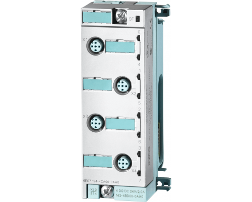 Модуль предназначен для соединения дискретных и аналоговых модулей ET 200pro. Обеспечивает подключение через 4 разъема M12. Совместим с Simatic DP.
