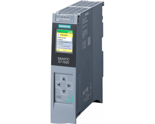 Центральный процессор Simatic S7-1500F, CPU 1511F-1 PN имеет объем рабочей памяти 450 кб для программы и 1.5 Мб для данных. Обеспечивается производительность 25 нс на бит. Встроен первый интерфейс PROFINET IRT с двухпортовым коммутатором. Требуется Simatic Memory Card. Необходимо учитывать утверждения и сертификаты согласно записи 109815653 на support.industry.siemens.com.