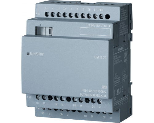 Модуль расширения Logo! dm16 24 предназначен для использования с контроллерами logo! 8. Обеспечивает питание 24 вольт. Входы и выходы транзисторные. Количество цифровых входов составляет 8, а количество цифровых выходов – 8. Ширина модуля составляет 4 те. Предназначен для расширения функциональности контроллеров logo! 8.