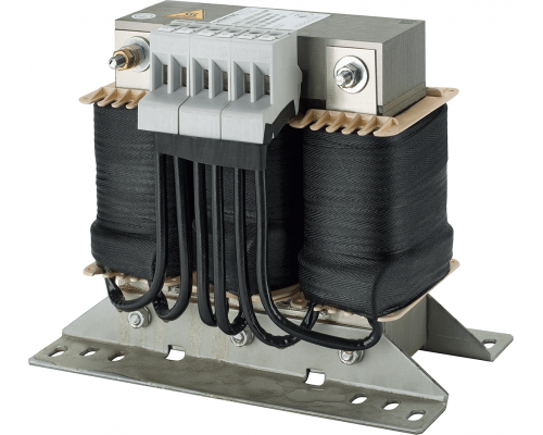 Дроссель предназначен для комбинированных блоков питания мощностью 20 кВт. Обеспечивает фильтрацию входного тока. Работает с трехфазным питанием в диапазоне напряжений 380-480 В и частотой 50/60 Гц.
