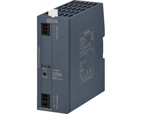 SITOP PSU4200 – стабилизированный источник питания. Входное напряжение составляет 120/240 В AC, выходное – 24 В DC с током 3 A. Предназначен для питания цифровых устройств и систем автоматизации.