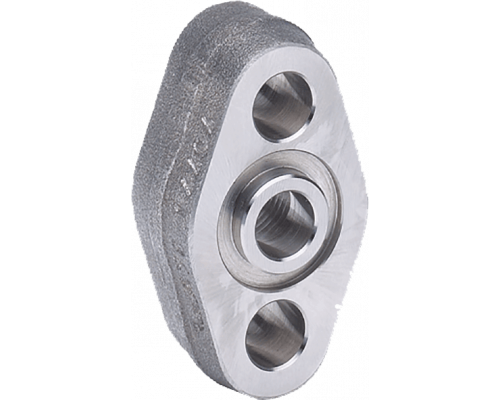 Комплект включает два винта 7/16-20, овальный фланец с резьбой UNF X 1 1/2 INCH, две шайбы и уплотнение (O-RING FPM 90). Материал изготовления – нержавеющая сталь 1.4404. Обеспечивается стойкость к максимальному давлению в 420 бар. Предусмотрена внутренняя резьба 1/2-14 NPT.