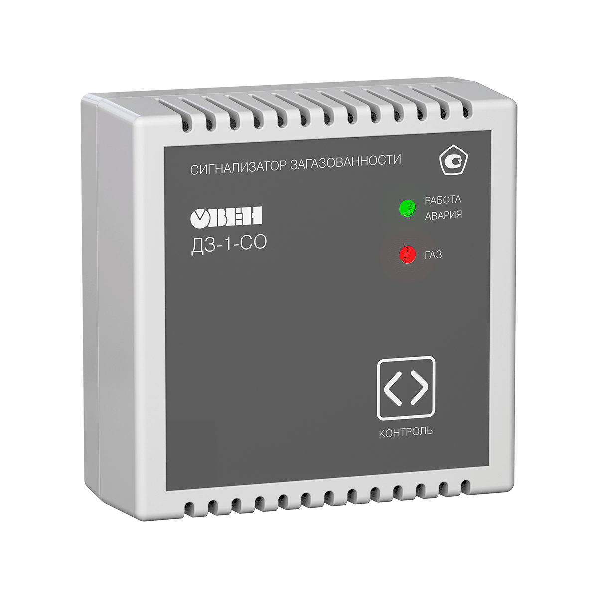 ОВЕН ДЗ-1-СО контролирует концентрацию угарного газа и сигнализирует о превышении пороговых значений 20 и 100 мг/м³ световым и звуковым сигналом, а также с помощью электромеханических реле для управления внешним оборудованием, например, газовым клапаном или вентиляцией. Прибор внесен в Госреестр СИ под номером 81276-21, имеет встроенную самодиагностику и режим имитации аварии, а также подходит для использования в котельных, гаражах и на промышленных предприятиях, контролируя площадь до 200 м².