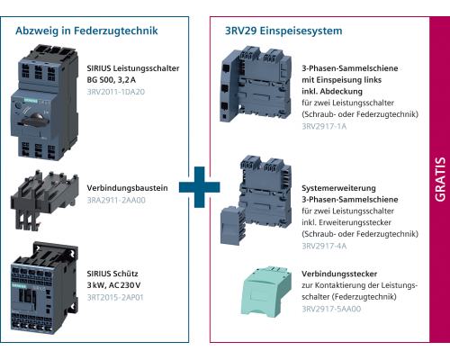 Стартовый пакет содержит следующие компоненты: 3RV2917-1A, 3RV2917-4A, 3RV2917-5AA00, 3RV2011-1DA20, 3RT2015-2AP01 и 3RA2911-2AA00. Данный пакет предназначен для начала работы с системами автоматизации и позволяет быстро развернуть базовое решение.