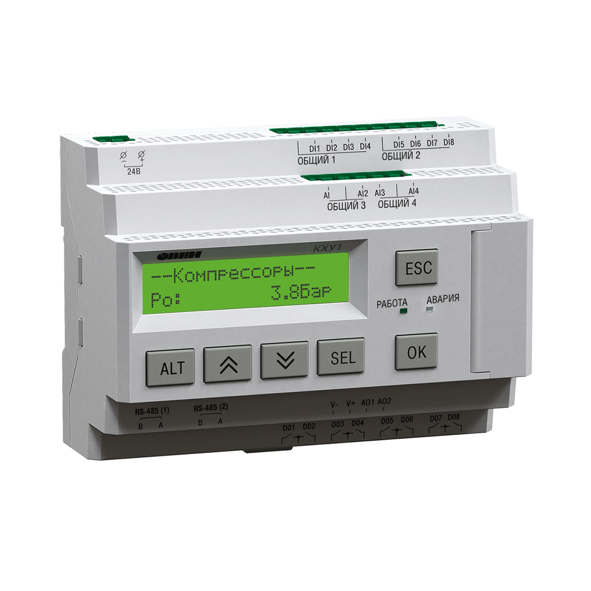 Контроллер КХУ1 предназначен для точной регулировки производительности компрессоров и конденсаторов в центральных холодильных машинах, обеспечивая оптимальный круговой прогон хладагента. Он настраивается с лицевой панели или через ПК, позволяет сохранять и тиражировать конфигурации, поддерживает управление преобразователями частоты и имеет два интерфейса RS-485 для интеграции в системы диспетчеризации. На прибор действует гарантия 2 года с заменой вышедших из строя элементов в сервисных центрах.