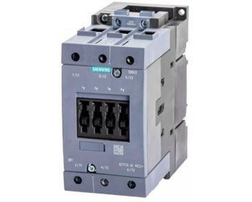 Контактор предназначен для работы с переменным током. Номинальное напряжение – 220 В, частота – 50/60 Гц. Устройство рассчитано на мощность до 45 кВт при напряжении 400 В. Контактор имеет 3 полюса и класс применения S3. Подключение осуществляется посредством клеммной колодки.