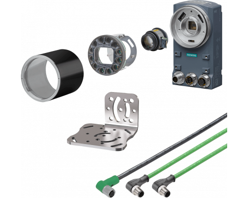 В комплект входит сканер Simatic MV550 H для чтения 1D/2D кодов с разрешением 1280 x 1024 пикселей. Оснащен объективом E-focus 25 мм и встроенной кольцевой лампой красного цвета. Предусмотрены Ethernet кабели длиной 2x2 м (M12/RJ45) и 4x2 м (M12/M12), а также кабель питания-IO-данных. В комплекте также есть защитное стекло для объектива (модульная защита IP67), монтажная пластина. Доступно до одного комплекта на клиента.