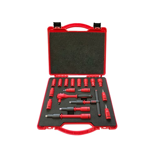 Диэлектрический набор электрика до 1000V, 1/4 дюйма, 18 предметов, VDE SHTOK 07305 подойдет для работы с шстигранным крепежом различного размера. Ключи и головки полностью изолированы для работы под напряжением.