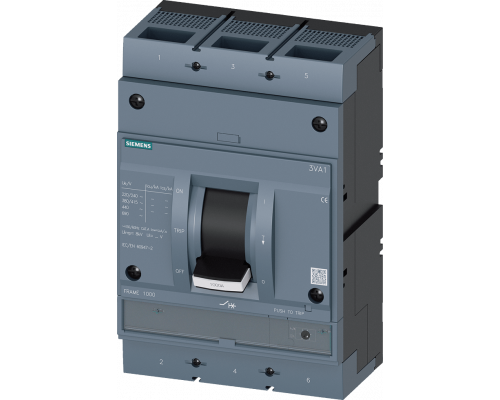 Автоматический выключатель относится к классу H. Обеспечивается breaking capacity Icu=70kA при 415V. Предназначен для защиты от короткого замыкания и оснащен защитой от короткого замыкания Ii=6..12 x In. Предусмотрен комплект для фиксации гайки. Имеет 3 полюса и соответствует стандарту 3VA1 IEC frame 1000. Совместим со стартером защиты TM120M и модулем AM.