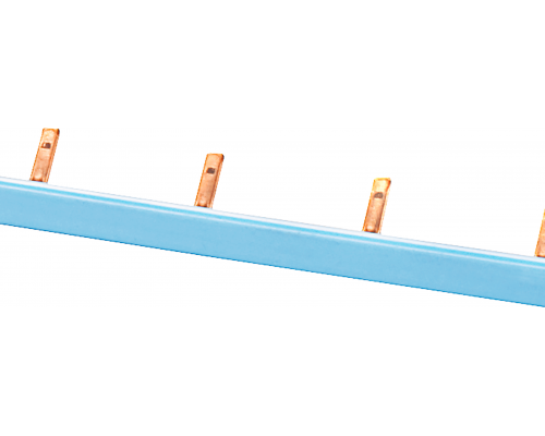 Представлена штырьковая сборная шина, однофазная, скошенная. Ширина шины составляет 10 мм, количество модулей - 54. Изоляция выполнена в синем цвете. Шина разрезная, предназначена для использования с устройствами AFDD 5SM601.-2. Расстояние между штырьками составляет 2 модуля.