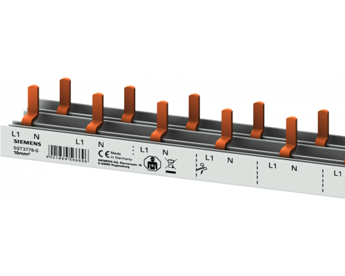Предлагается компактная Pin шина с сечением 10mm2. Она состоит из 1p/N компонента устройства первого полюса и дополнительного контакта 0,5-полного полюса. Обеспечена защита от прикосновения. Длина составляет 1000 мм и может быть обрезана по необходимости.