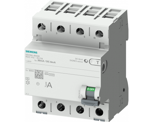 Устройство защитного отключения относится к 4-полюсным моделям и имеет тип A. Номинальный ток In составляет 40 А, а номинальный ток утечки – 30 мА и 6 мА DC. Напряжение питания переменным током Un AC равно 400 В. Предназначено для использования в электрозаправках.