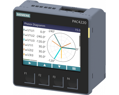 Устройство SENTRON PAC4220 предназначено для мониторинга электроэнергии. Оно оснащено цветным графическим дисплеем TFT. Соответствует стандарту PMD-III согласно IEC61557-12 и имеет класс точности активной энергии 0.2 (0.2S согласно IEC62053-22). Устройство трехфазное, с частотой 45-65 Гц. Номинальное напряжение составляет 690/400 В, а номинальный ток – x/1A или x/5A. Предусмотрен блок питания постоянного тока от 24 до 48 В с допустимым отклонением +-25%. Поддерживается измерение различных электрических переменных, включая активную, реактивную мощность, энергию, коэффициент мощности, THDu, THDi, гармоники до 64-го порядка по фазе.