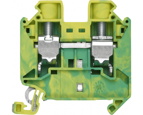 Клемма предназначена для соединения защитного проводника (PE). Используются винтовые клеммы. Ширина клеммы составляет 12,0 мм. Цвет клеммы – зелено-желтый, соответствующий стандарту для PE-проводников. Поддерживается сечение 16 мм².