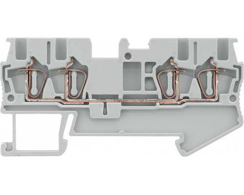 Клемма обеспечивает пружинное подсоединение для четырех проводов сечением от 0.14 до 1.5 мм2. Ширина клеммы составляет 4.2 мм. Цвет корпуса - серый. Предназначена для проходных соединений.