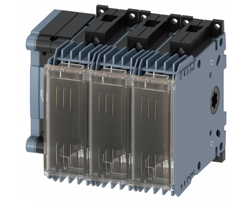 Предохранительный выключатель-разъединитель предназначен для работы с предохранителями типа LV HRC типоразмера 000. Устройство имеет переднее управление слева и представляет собой базовый блок без ручки. Оснащено рамочными клеммами и не включает предохранители.