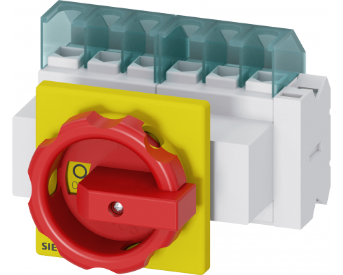 Выключатель предназначен для использования в качестве главного или аварийного. Обеспечивается коммутация 6-полюсным исполнением. Номинальный ток составляет iu=25. При напряжении 400В допустимая мощность составляет p/ac-23a = 9,5 кВт. Имеет 1 нормально открывающий и 1 нормально закрывающий контакты. Конструкция предусматривает крепление передней панели и фиксацию посредством 4 отверстий. Оснащен поворотной рукояткой красно-желтого цвета.
