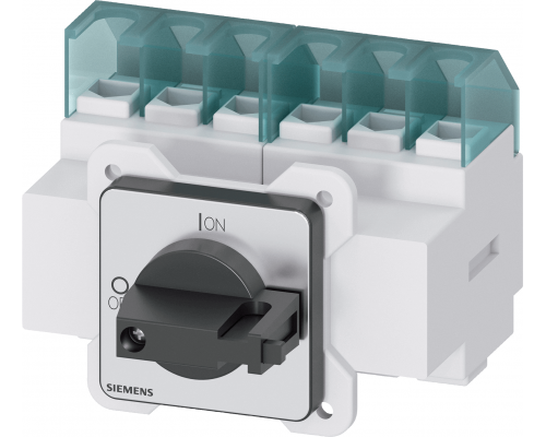 Главный выключатель 6-полюсный имеет номинальный ток iu=25, и категорию применения p/ac-23a. Мощность составляет 9,5 кВт при напряжении 400В. Выключатель предназначен для переднего крепления и крепится с помощью 4 отверстий. Оснащен черной рукояткой и механизмом запирания.