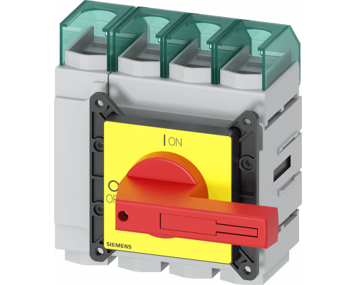 Главный контрольный выключатель предназначен для монтажа на полу. Он имеет 4 полюса и рассчитан на ток IU=250A. При напряжении 400V, выключатель способен коммутировать мощность P до 132kW. Тип привода – поворотный механизм. Цвет корпуса – красный и желтый. Соответствует категории применения AC-23A.