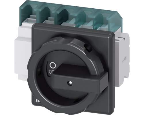 Выключатель-разъединитель предназначен для установки на фронтальную панель. Устройство имеет 4 полюса и номинальный ток 63А. При напряжении 400V и AC-23A он выдерживает нагрузку до 22kW. Предусмотрена установка в 4 отверстия. В конструкции используются 1 нормально-разомкнутый и 1 нормально-закрытый контакты. Поставляется с поворотным приводом черного цвета.