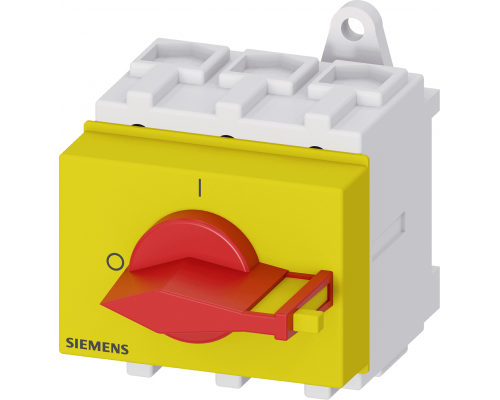 Аварийный главный управляющий переключатель имеет 3 полюса. Номинальный ток составляет iu=63. Мощность при напряжении 400В составляет p/ac-23a 22кВт. Предназначен для монтажа на монтажную рейку или посредством двух отверстий. Оснащен рычагом красного и желтого цвета.