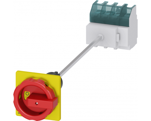 Предназначен для аварийного отключения электрооборудования. Выполнен в 4-полюсном исполнении. Номинальный ток iu составляет 63А. Допускается работа в цепях переменного тока 23А при напряжении 400В, при этом потребляемая мощность составит 22кВт. Предусмотрена возможность монтажа на монтажную рейку или на поверхность с помощью двух отверстий. Корпус выполнен из красного и желтого пластика с поворотным механизмом.
