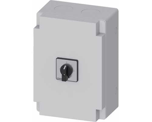 Переключатель имеет 3 полюса и рассчитан на ток iu=63. Он предназначен для работы в цепях категории p/ac-23a при напряжении 400V, что соответствует мощности 22 кВт. Предусмотрено 2 нормально открытых клеммы. Корпус изготовлен из изоляционного материала и обеспечивает степень защиты IP65. Это переключатель типа 1-0-2, который не является запираемым.