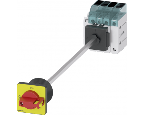 Главный выключатель трехпозиционный предназначен для коммутации цепей переменного тока. Рабочий ток составляет 32А при напряжении указанном выше. Мощность коммутируемого оборудования составляет 11,5 кВт. Устройство устанавливается в дверь с центральным отверстием диаметром 22,5 мм. Панель установки является базовой. Ручка черного, красного и желтого цветов имеет размеры 48x48 мм и оснащена дополнительным контактом 1NO+1NC.