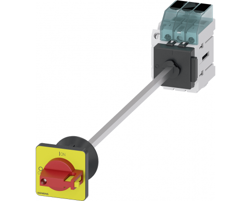 Главный выключатель предназначен для коммутации цепей переменного тока. Рабочий ток составляет 32А при 400В, коммутация AC-23, мощность 11,5кВт. Устройство устанавливается в дверь с центральным отверстием диаметром 22,5 мм. Имеет ручку черного, красного и желтого цветов размером 48 x 48 мм, а также дополнительный фиксатор. Устанавливается на базовую монтажную панель.