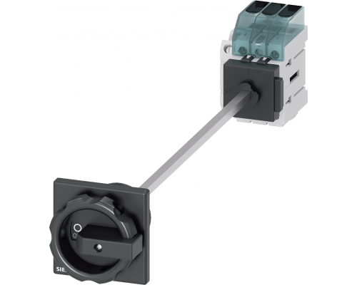 Главный выключатель предназначен для коммутации цепей переменного тока. Рабочий ток составляет 32А при напряжении 400В (AC-23). Мощность коммутируемого оборудования – 11,5 кВт. Устройство имеет три полюса и поставляется с базовой панелью установки, которая крепится в дверь через центральное отверстие диаметром 22,5 мм. В комплекте поворотная ручка черного цвета размером 66x66 мм с дополнительной фиксацией. Предусмотрен контакт 1NO+1NC.