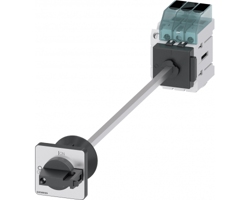 Главный выключатель предназначен для коммутации цепей переменного тока. Рабочее напряжение составляет 400В, номинальный ток – 63А, коммутируемая мощность – 22.0кВт при AC-23A. Устройство устанавливается в дверь с центральным отверстием диаметром 22,5 мм. Предусмотрена ручка черного цвета размером 48 x 48 мм и дополнительный контакт 1NO+1NC. Панель установки является базовой.