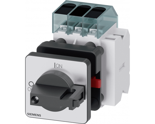 Выключатель предназначен для рабочих коммутаций при AC-23A и 400В, с мощностью 22.0 кВт. Устройство имеет базовую установку с центральным отверстием диаметром 22,5 мм. Предусмотрена черная ручка размером 48 x 48 мм с дополнительным контактом 1NO+1NC. Фронтальная часть устройства имеет базовую установку.