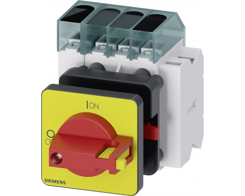 Главный выключатель предназначен для рабочих коммутаций при AC-23. Номинальный ток составляет 63А при напряжении 400В и мощности 22.0 кВт. Устройство имеет фронтальную установку базового типа с центральным отверстием диаметром 22,5 мм. Предусмотрена ручка черного, красного и желтого цветов размером 48 x 48 мм, а также дополнительный контакт 1NO+1NC.
