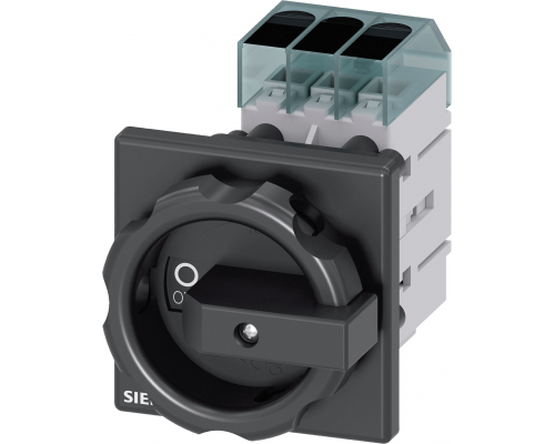 Главный выключатель предназначен для рабочих коммутаций при AC-23A и имеет номинальный ток 63A при напряжении 400В и мощности 22.0 кВт. Устройство имеет базовую установку с центральным отверстием диаметром 22,5 мм и оснащено черной рукояткой размером 66 x 66 мм. Цвет рукоятки – черный.