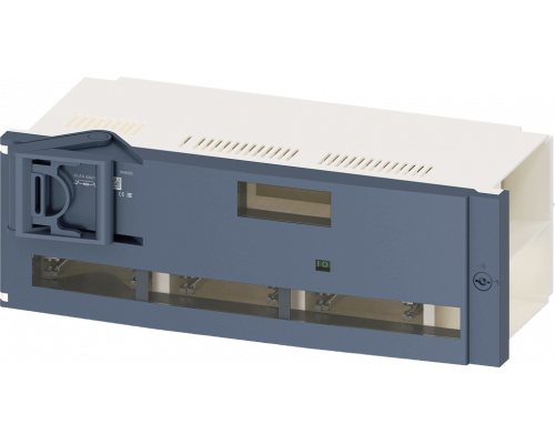Выключатель представляет собой реечный вариант с втычными предохранителями NH3 630A. Обеспечивается трехпозиционное управление AC23A 500В. Номинальная отключающая способность составляет 120 (500В AC). Предусмотрен ручной привод и дополнительный контакт 1 но на многофункциональном штекере. В комплекте три трансформатора тока на многофункциональном штекере с характеристикой 600/5A и классом точности 1.