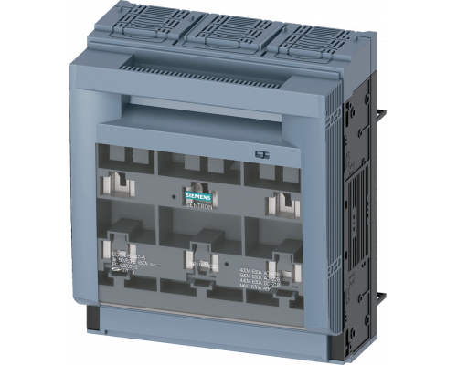 Предохранительный разъединитель имеет три полюса и предназначен для работы с предохранителями типа NH3. Номинальный ток составляет 630А. Используется шинная система шириной 60 мм. Конструкция предусматривает cover level 32/70 мм и рамочный зажим.