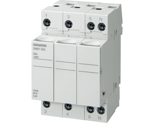 Siemens 3NW7063 Держатель предохранителей цилиндрических, 10x38mm, 32A, 3+n-полюсн.