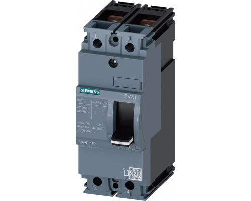 Выключатель расположен в литом корпусе. Типоразмер – 160. Класс отключающей способности n. Имеет номинальный ток короткого замыкания icu 25кА при 415 В. Это двухполюсный выключатель. Защита линии представлена модулем tm210, а также функциями ftfm и in=100A. Обеспечивается защита от перегрузки ir=100A и фиксированная защита от тока короткого замыкания ii=10 x in. Подключение осуществляется посредством шинного соединения.