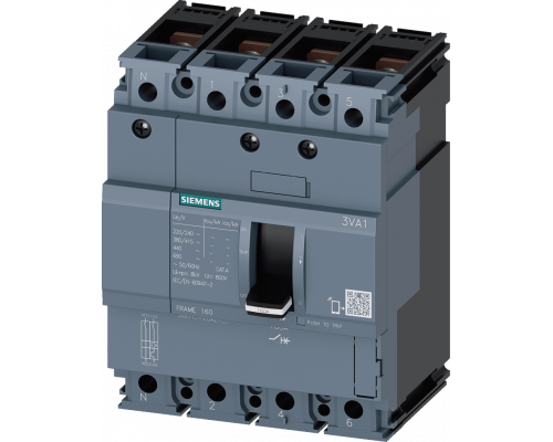 Выключатель расположен в литом корпусе 3va1 iec. Типоразмер - 160. Класс отключающей способности - M. Предельный ток короткого замыкания - 55 кА при 415 В. Это четырехполюсное устройство. Предусмотрена защита линии TM210, FTFM. Номинальный ток защиты от перегрузки - 100А. Фиксированная защита от тока короткого замыкания - 10 x In. Отсутствует защита нейтрали. Присоединение - шинное.