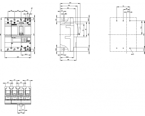 Выключатель имеет класс отключающей способности H и номинальный ток защиты линии IN=100A. Обеспечивается защита от перегрузки IR=40A...100A, а также защита от короткого замыкания ISD=0,6...10x IN, II=1,5...12x IN. Предусмотрена регулируемая защита нейтрали (off, до 100%). Также имеется защита от замыкания на землю с переключением IG=0,2... 1 x IN, TG=0,0508ms. Подключение осуществляется кабелем.