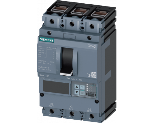 Выключатель выполнен в литом корпусе 3va2 iec типоразмера 100. Класс отключающей способности – icu=110ka @ 415 в 3-полюс. Предусмотрена защита линии etu850, lsi. Номинальный ток in составляет 63a, а ток защиты от перегрузки ir – от 25a до 63a. Защита от тока короткого замыкания isd – от 0,6 до 10x in, ii – от 1,5 до 12x in. Защита нейтрали опционально доступна с внешним тт до 160%. Подключение осуществляется кабелем.