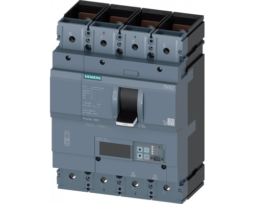Автоматический выключатель имеет коммутационную способность 110 кА при 415 В. Предназначен для защиты систем. Обеспечивается защита от перегрузки (IR от 160 А до 400 А) и короткого замыкания (ISD от 0.6 до 10x In). Доступна защита от обрыва фазы с регулировкой (от 0 до 100%). Предусмотрена защита от замыкания на землю, которую можно отключить (IG от 0.2 до 1 x In, время отключения от 0.05 до 0.8 с). Подключение осуществляется через клеммы Lug.