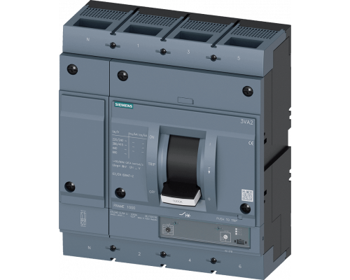 Автоматический выключатель имеет номинальный ток 800 А и максимальный ток короткого замыкания 55 кА при 415 В. Предохранитель класса M имеет систему защиты ETU340 и ELISA LI. Обеспечивается защита от перегрузки током 320 А…800 А. Предусмотрена защита от короткого замыкания II=12 x In. Регулируемая защита N-проводника (отключена, 50%, 100%). Подключение осуществляется клеммами типа Lug.