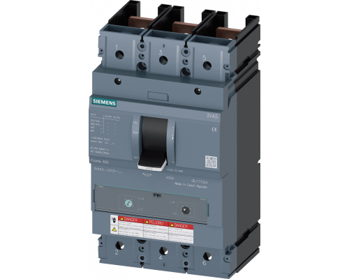 Автоматический выключатель 3va5 ul frame 400 имеет breaking capacity класса M 35kA при 480 В. Предоставляет защиту линий типа TM240 и ATAM. Номинальный ток In составляет 250A, без защиты от перегрузки. Установлены параметры короткого замыкания Ii=5...10 x In, без подключения.