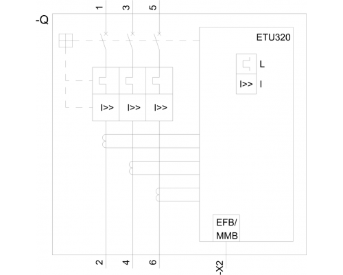 Автоматический выключатель имеет отключающую способность 100 кА при 480 В. Предусмотрена защита от перегрузки с током срабатывания от 16 до 40 А. Обеспечивается защита от короткого замыкания током от 1,5 до 12 кратных номинального тока. Используется для защиты линий и оснащен защитой ETU320, LI.