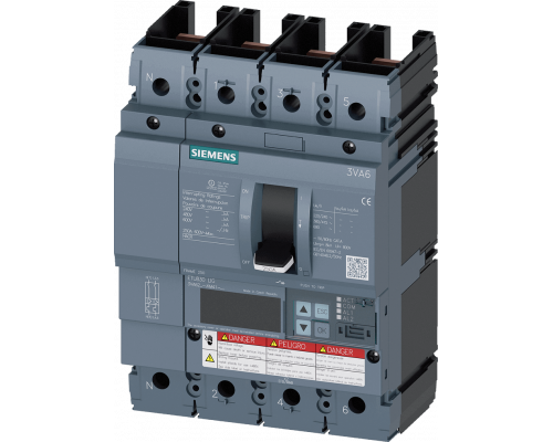 Автоматический выключатель имеет breaking capacity class L 150kA при 480V. Обеспечивается защита от перегрузки в диапазоне ir=100A...250A. Также предусмотрена защита от короткого замыкания ii=1,5...10 x In. Наличие защиты от заземления ig=0,2...1 x In, время срабатывания tg=0,05-0,8s без подключения. Используется line protection ETU830, LIG. Выключатель 4-х полюсный.